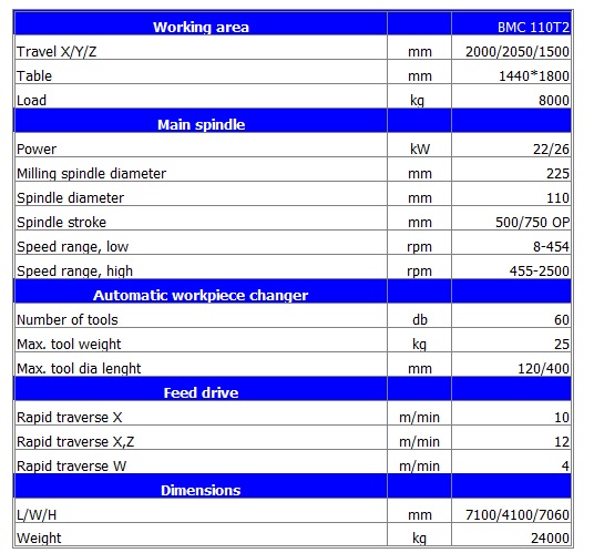 - ATC – Automatic tool changer with tool magazine, 60 tool pockets