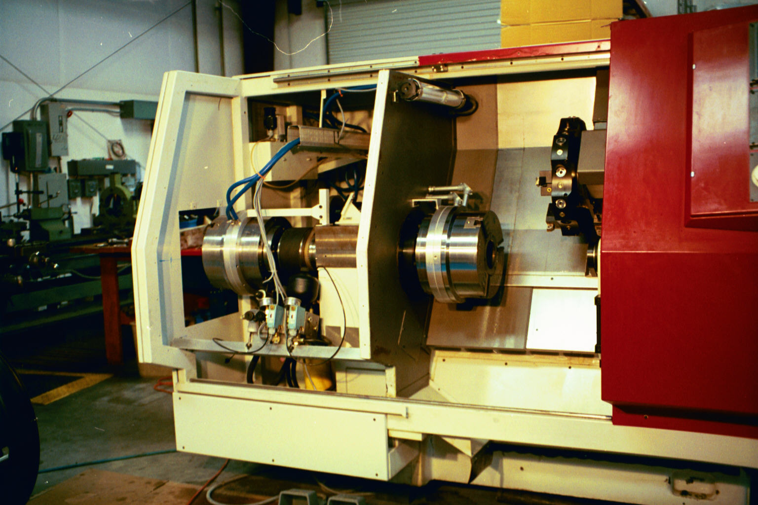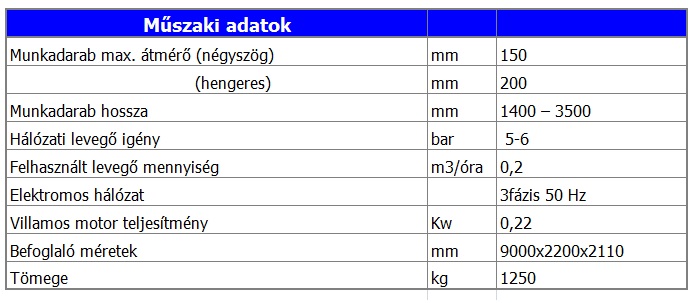 - nagyáteresztésű levegőműködtetésű tokmányok, 2db főorsóra szerelve – tengelyek megfelelő megfogása és a főorsó teljes áteresztésének biztosítása érdekében